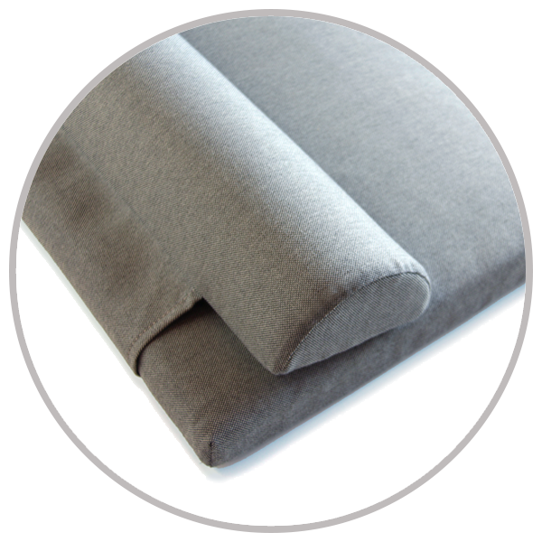Polsterauflage und Nackenrolle in hochwertigem Sunbrella-Stoff oder Filz
