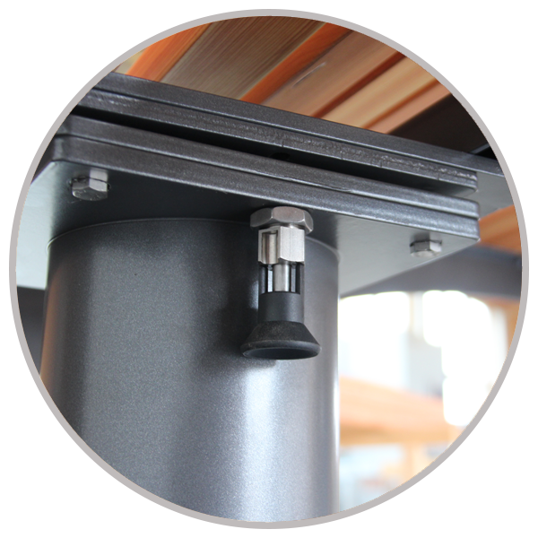 - Version 1 zur Befestigung auf Sockelfundament: Standfuß aus Edelstahl zur Montage auf Sockelfundament (auf Wunsch pulverbeschichtet in RAL-Tönen)